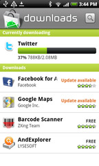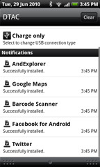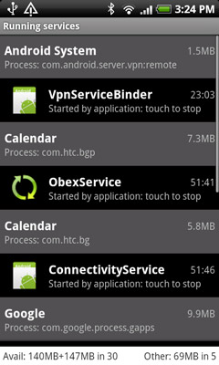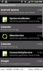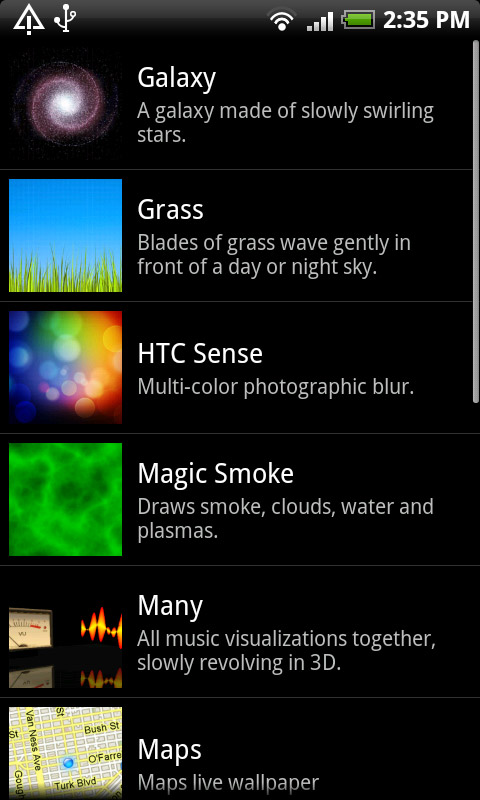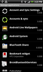 แอปพลิเคชั่นจากโรงงาน ในเครื่อง HTC Desire (คลิกที่รูปหน้าจอเพื่อดูคำอธิบาย)