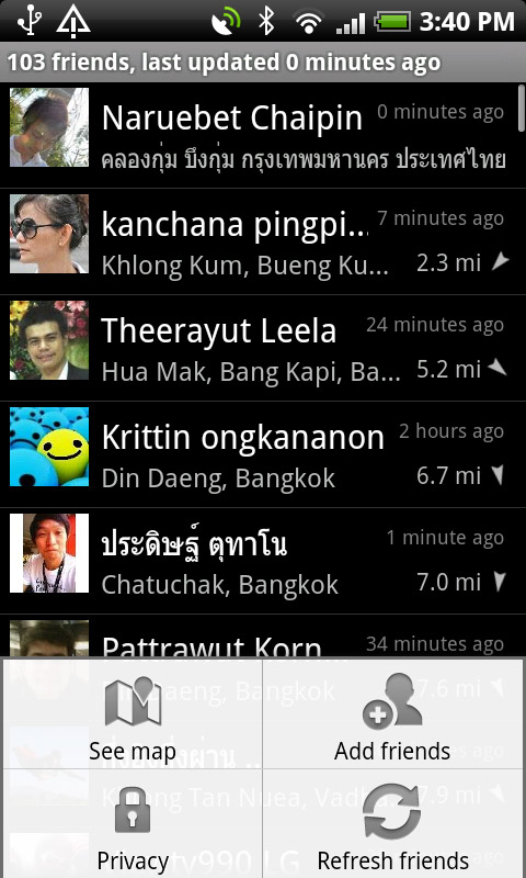 รายชื่อเพื่อน ๆ ที่เข้าร่วมแบ่งปันตำแหน่งบน Latitude