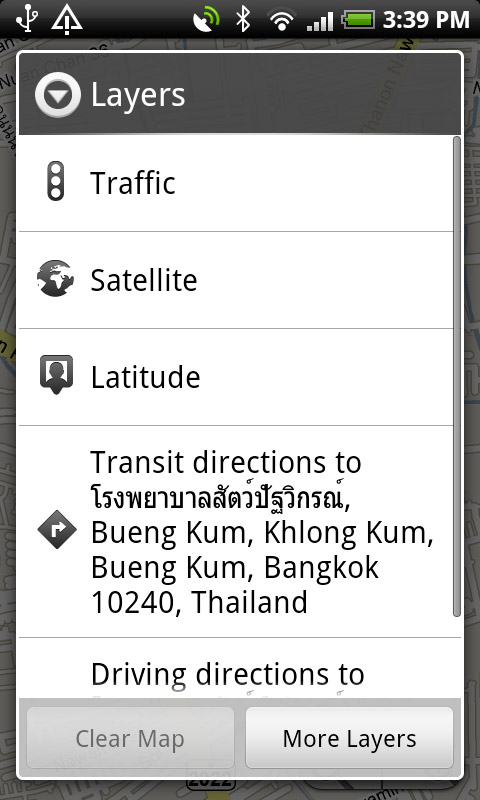 ตัวเลือกเพิ่มเติมสำหรับการล้างข้อมูลที่แสดงบนแผนที่ และเปลี่ยนบัญชีที่ใช้เชื่อมต่อ