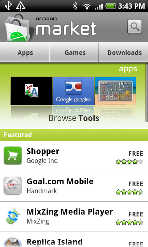 Market แอปพลิเคชั่นสำหรับดาวน์โหลดโปรแกรมเพิ่มเติมมาติดตั้ง มีโปรแกรมให้เลือกโหลดมากมายแบ่งตามหมวดหมู่ต่าง ๆ