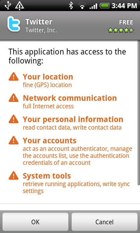 แสดงสิทธิ์ต่าง ๆ ที่โปรแกรมสามารถทำได้บนตัวเครื่อง (ควรสังเกตหน้านี้ให้ดีก่อนโหลด)