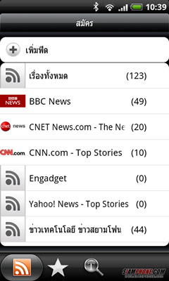 ผู้ใช้สามารถเพิ่มแหล่งฟีดข่าวได้จากรายการหรือเพิ่ม URL เข้าไปเอง