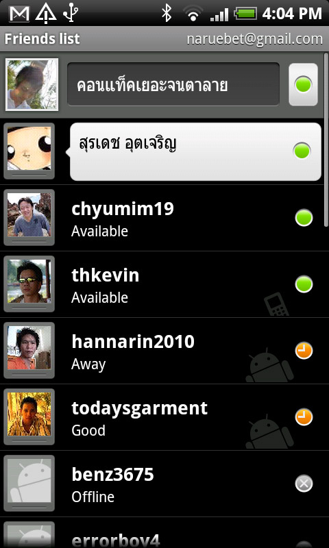 แสดงรายชื่อของเพื่อนที่ได้เพิ่มผู้ใช้ลงในรายชื่อ Talk (ผู้ใช้สามารถคุยด้วยได้)