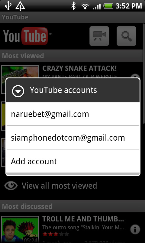 สามารถเลือกบัญชีในการเข้าใช้งานอัพโหลดวีดีโอ