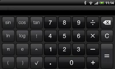 หากแสดงผลในแนวตั้งจะไม่แสดงฟังค์ชั่นการคำนวนขั้นสูง