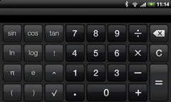 หน้าจอเครื่องคิดเลขในแนวนอนแสดงฟังค์ชั้นการคำนวนขั้นสูง