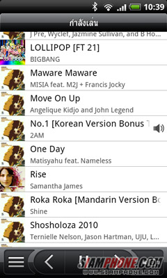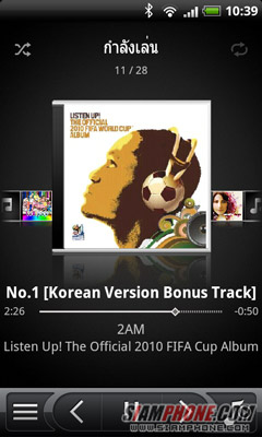 หน้าจอขณะเล่นเพลง สามารถเลื่อนแถบเพื่อข้ามไปยังท่อนที่ต้องการได้