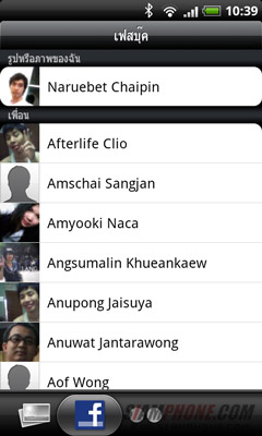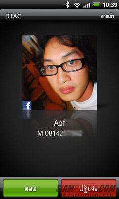 - แถบดำเนินการ สำหรับเลือกเพื่อเข้าดูโปรไฟล์เฟซบุ๊ค ตั้งเสียงเรียกเข้า ส่งข้อความเสียง ส่งเมล์ เป็นต้น