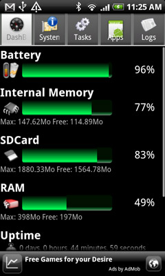 - แบตเตอรี่ - แสดงสถานะของแบตเตอรี่ มีอะไรส่วนไหนใช้พลังงานไปเท่าไหร่ พร้อมแสดงเวลาที่ใช้เครื่องมาแล้วทั้งหมด กับเวลาในการเปิดเครื่องครั้งปัจจุบัน