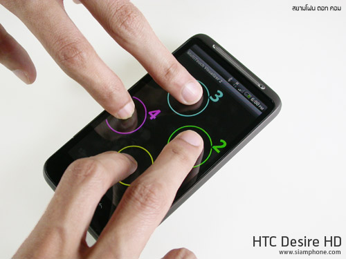ทดสอบการใช้งานระบบสัมผัสโดยการสัมผัสพร้อมกันหลายนิ้ว พบว่าสัมผัสได้สูงสุด 4 นิ้วพร้อม ๆ กัน