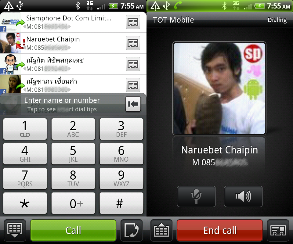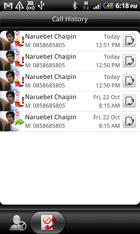 อีกหน้าจอจะแสดงประวัติการโทรของผู้ติดต่อที่เราตัดสาย
