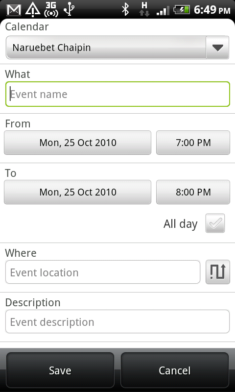 การสร้างกิจกรรมในแต่ละครั้งนั้นจะต้องเลือกแหล่งที่จะใช้จัดเก็บกิจกรรม (เลือกปฎิทิน)