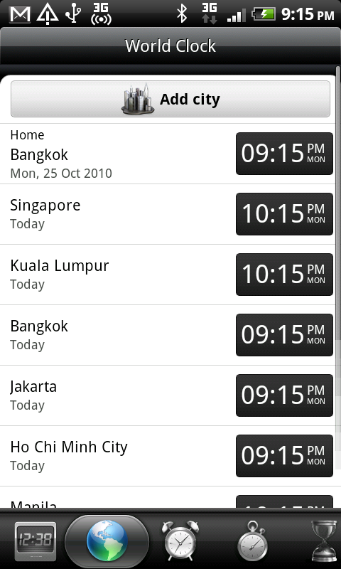 รายการเวลาของพื้นที่ต่าง ๆ บนโลก โดยสามารถเพิ่มสถานที่ลงไปได้