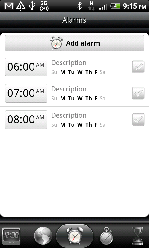 แอพพลิเคชั่นจากโรงงาน ในเครื่อง HTC Desire HD มีดังต่อไปนี้ (เลือกที่ icon ของโปรแกรมเพื่อข้ามไปอ่าน และ คลิกที่รูปหน้าจอเพื่อขยายพร้อมดูคำอธิบาย)