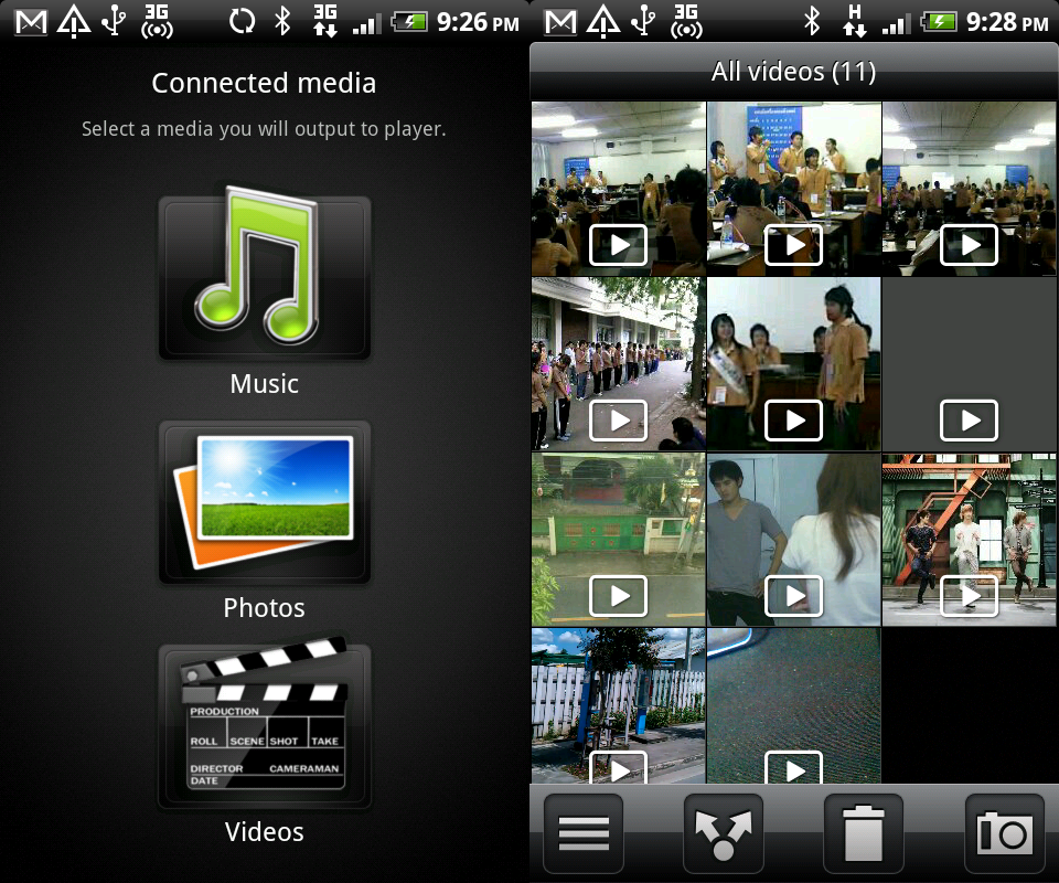 หน้าจอหลัก และ หน้าจอสำหรับเลือกวีดีโอที่จะส่งไปแสดงบนจอทีวี