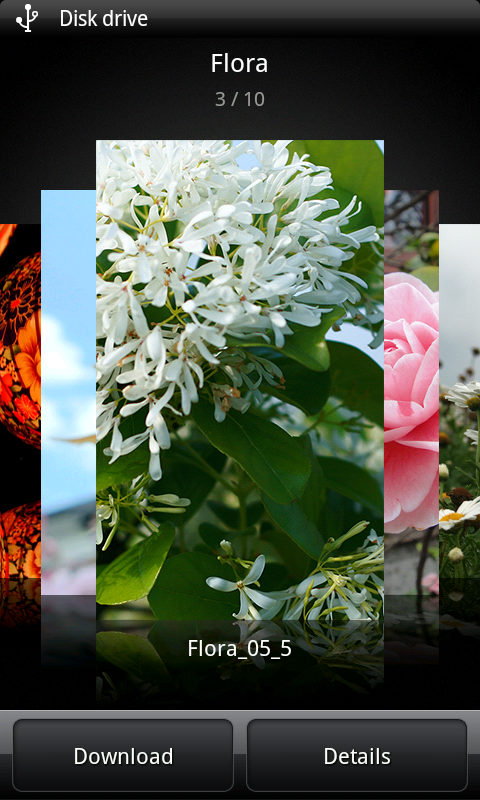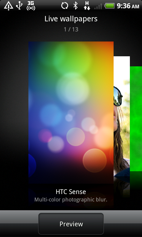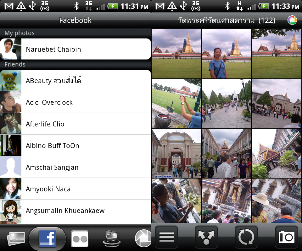 แสดงภาพจากแหล่งข้อมูลต่าง ๆ ทั้งในเครื่อง ในการ์ด จาก Facebook Flickr และ Picasa สามารถใส่เพิ่มเติมได้จาก HTC Hub