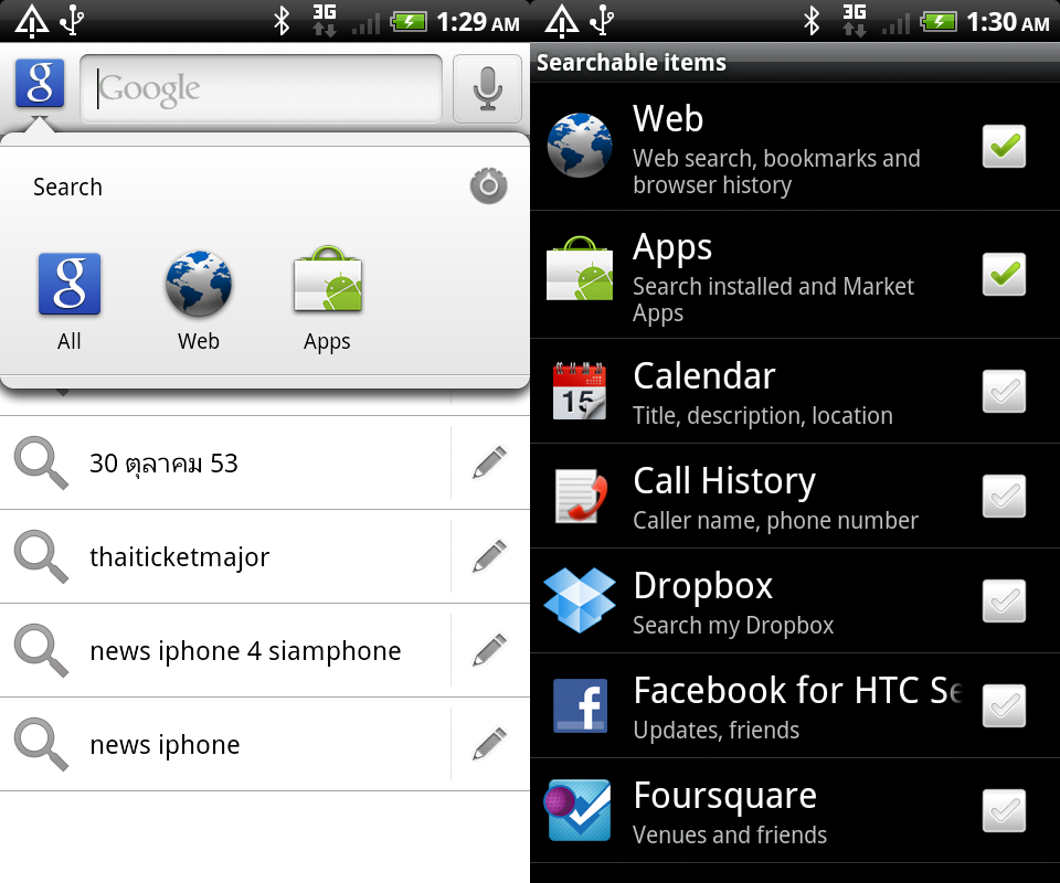- Search - ปรับแต่งการค้นหาของ Google Search และกำหนดการจัดเก็บประวัติการค้นหา รวมทั้งตั้งค่า รายการที่สามารถค้นหาได้จากฟังก์ชั่น Search ในหน้าแรก
