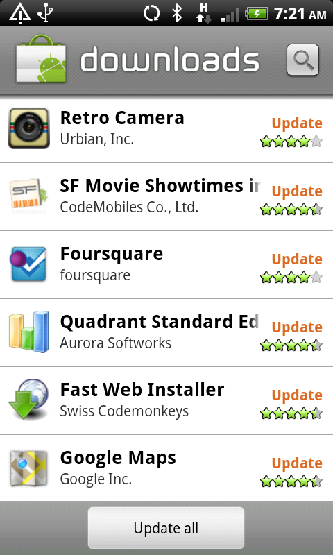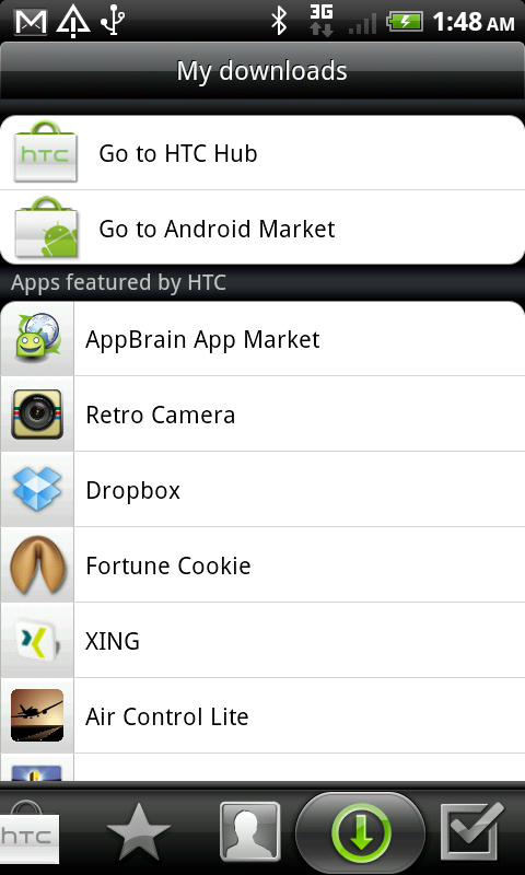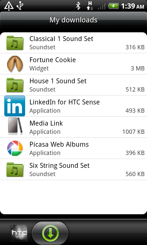 รายการที่ดาวน์โหลดมาจาก HTC Hub