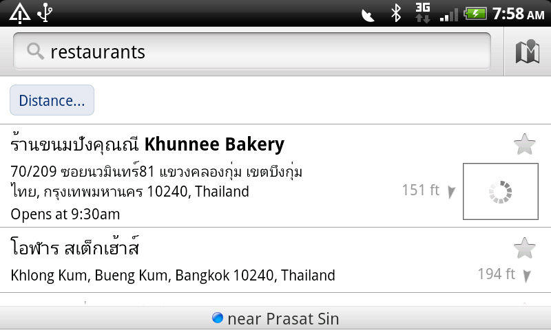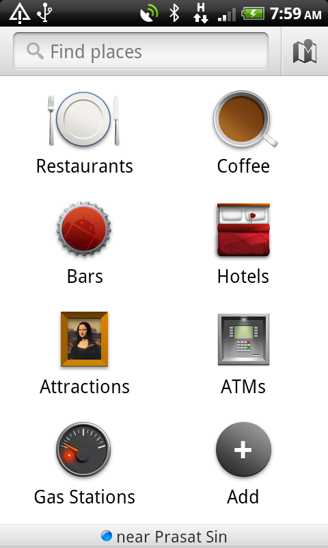หน้าจอหลัก และ หน้าจอในส่วนค้นหาสถานที่ใกล้เคียง