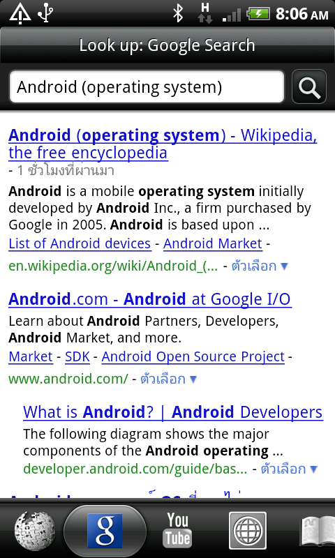 - ปุ่ม Search แตะเพื่อเรียกฟังก์ชั่นการค้นหาของโปรแกรมที่แสดงอยู่บนหน้าจอในปัจจุบัน