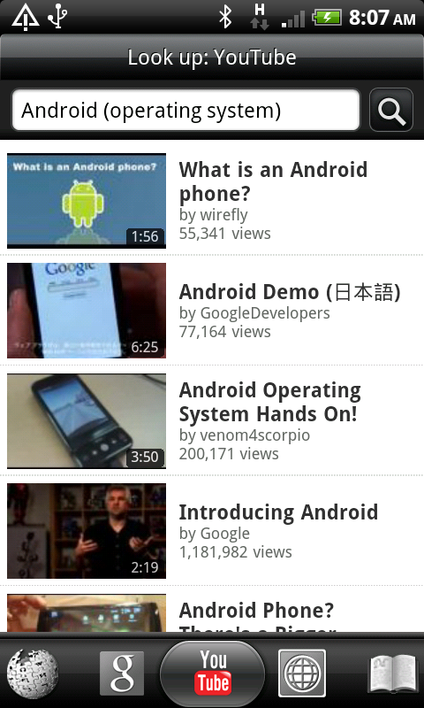 ปุ่ม Search หากแตะครั้งเดียวจะเป็นการเรียกฟังก์ชั่นค้นหา แต่ถ้าแตะค้างไว้จะแสดงฟังก์ชั่นคำสั่งเสียง
