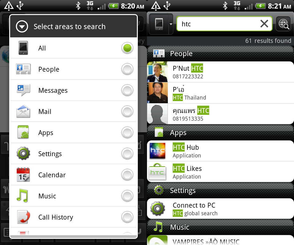 แอพฯ ที่ติดตั้งแล้ว และ ตรงกับที่ HTC Likes