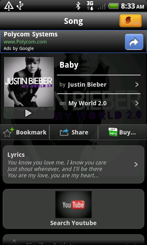Music แอพพลิเคชั่นเล่นเพลงที่รองรับการส่งออกสัญญาณเสียงแบบ Dolby Mobile และ SRS
