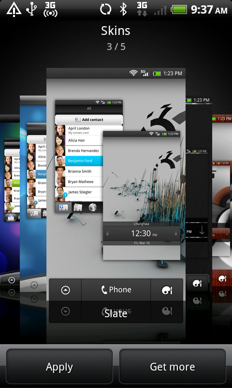 - Widget Wallpaper หรือ Skin สามารถดาวน์โหลดเพิ่มเติมได้จาก HTC Hub