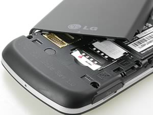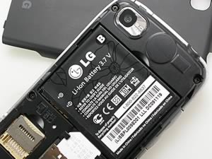 ถอดฝาหลังออกโดยการกดแล้วดันขึ้นข้างบน ภายใต้ฝาหลังพบเลนส์กล้องถ่ายรูป ติดตั้งอยู่ส่วนบน ถัดลงมาเป็นช่องวางแบตเตอรี่ ขนาด 900 mAh ด้านล่างเป็นช่องเสียบการ์ดหน่วยความจำ microSD วางคู่กับช่องเสียบซิมการ์ด