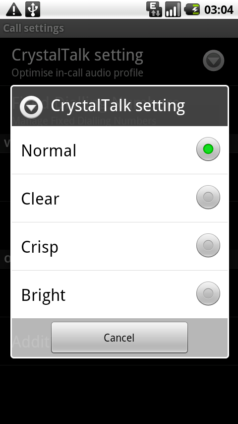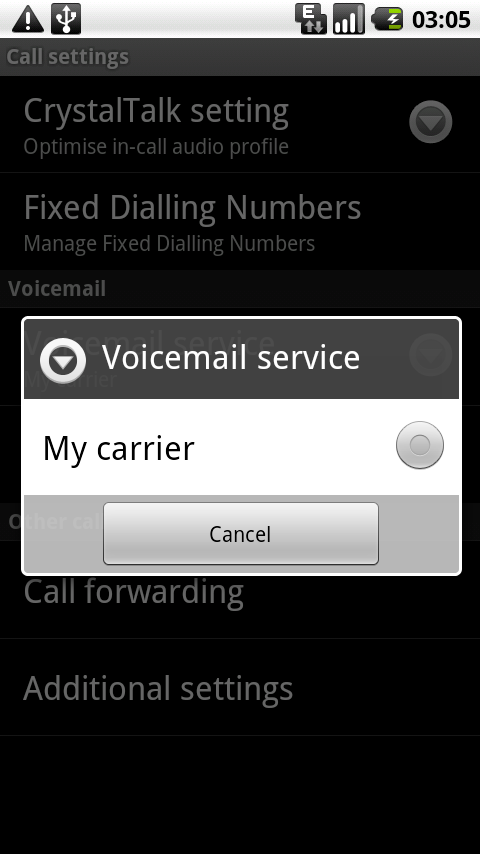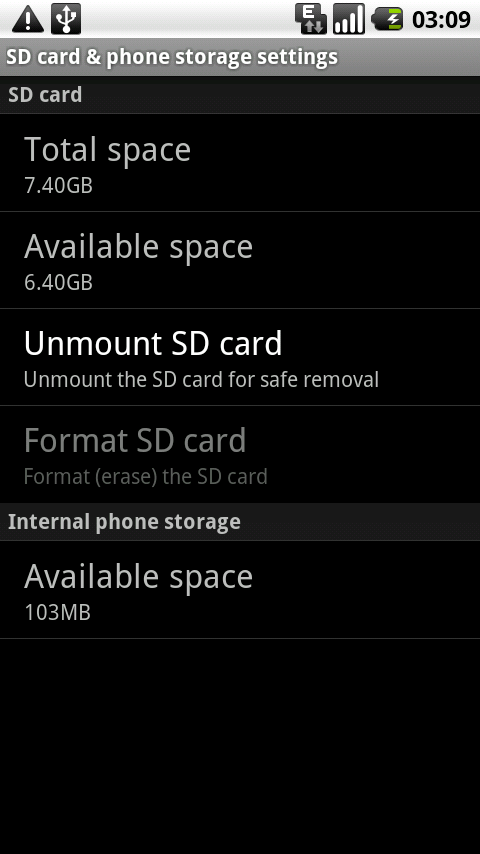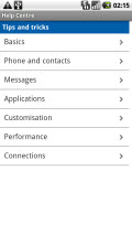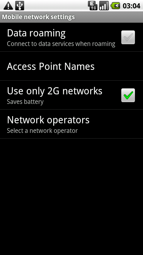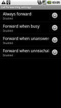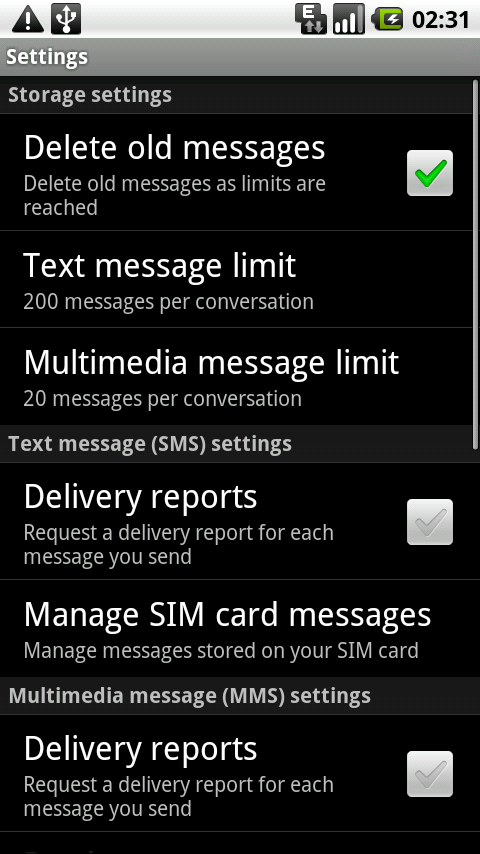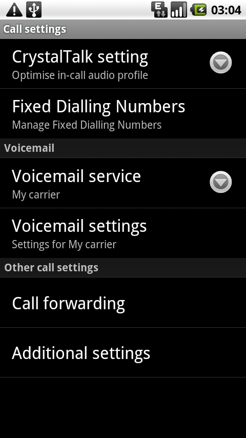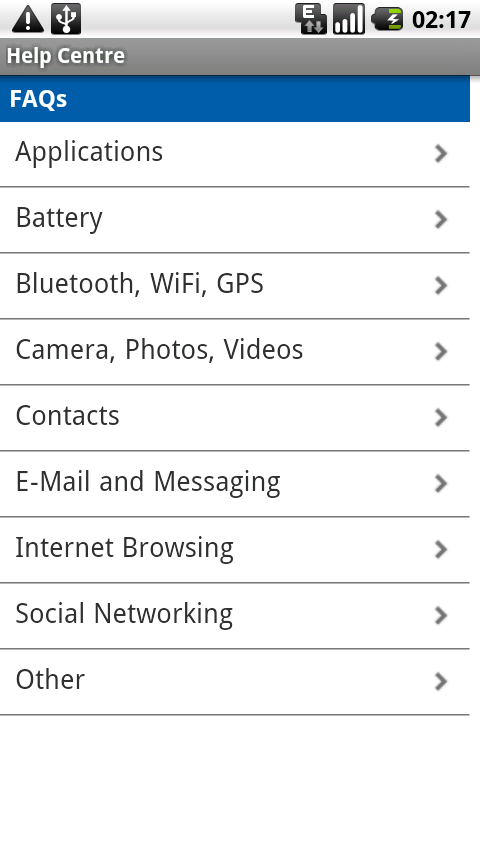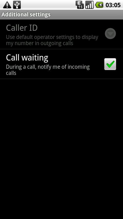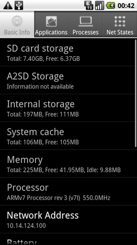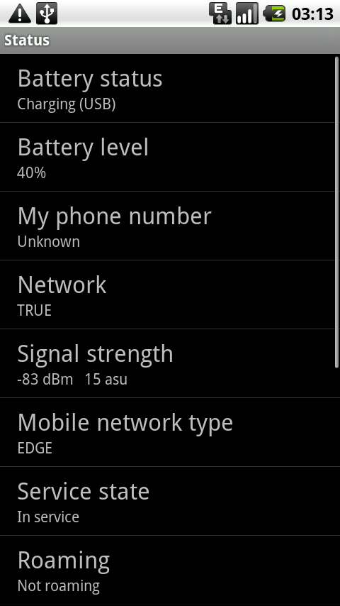 - Status - แสดงข้อมูลสถานะของเครื่อง ระดับประจุแบตเตอรี่ หมายเลขโทรศัพท์ เครือข่าย เป็นต้น