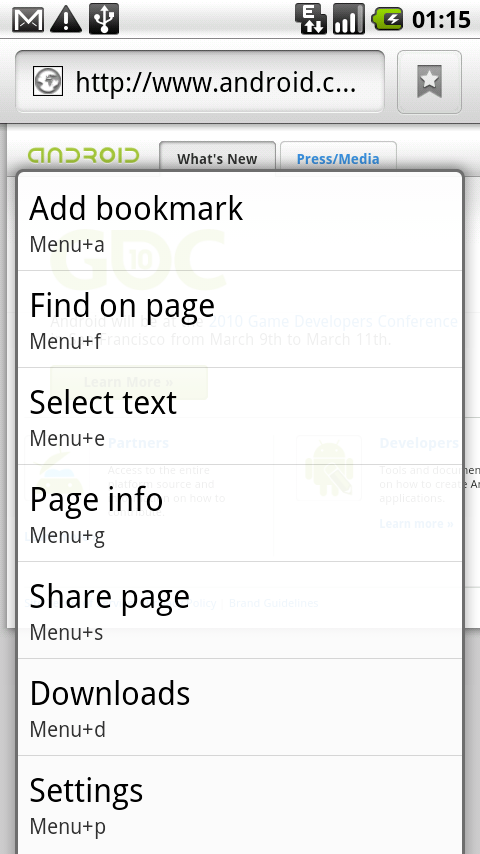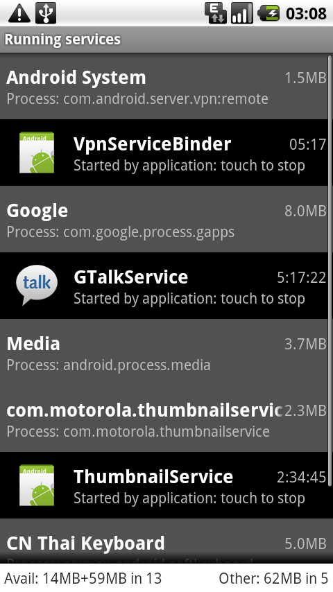 แอปพลิเคชั่นจากโรงงาน ในเครื่อง Motorola Milestone