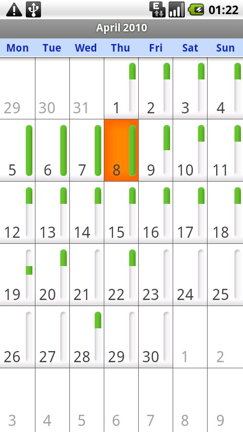 แสดงปฏิทิน และวันที่มีการบันทึกเหตุการณ์ไว้