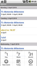 Home Screen - Motorola Milestone มีหน้าจอหลักที่สามารถปรับแต่งให้เหมาะสมกับการใช้งานของผู้ใช้งานได้อย่างสะดวก ผู้ใช้สามารถเลือกปรับแต่ง จัดวางไอคอน จัดวางวิดเจ็ท จัดวางแฟ้มไอคอน และปรับเปลี่ยนพื้นหลัง