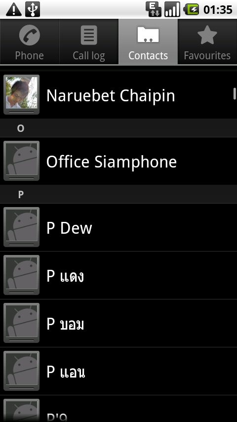 หน้าแสดงรายชื่อผู้ติดต่อ