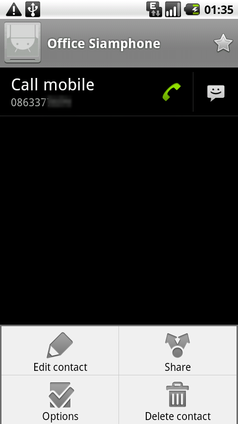 หน้าแสดงรายละเอียดของผู้ติดต่อ เมื่อกด Menu บนตัวเครื่องจะแสดงให้เห็นฟังค์ชั่นการปรับแต่งต่างๆ