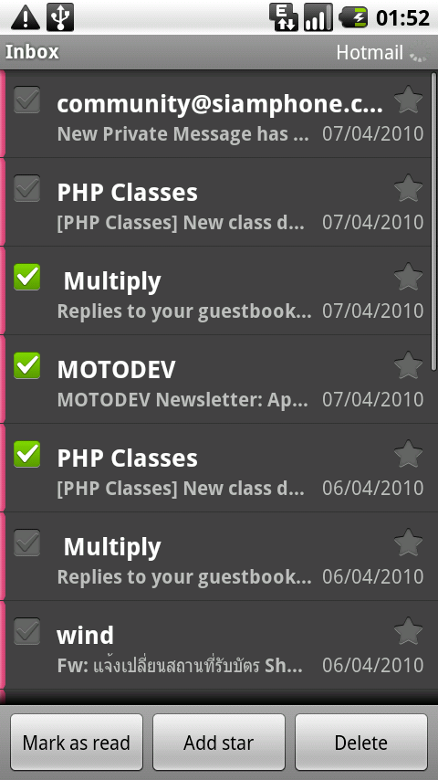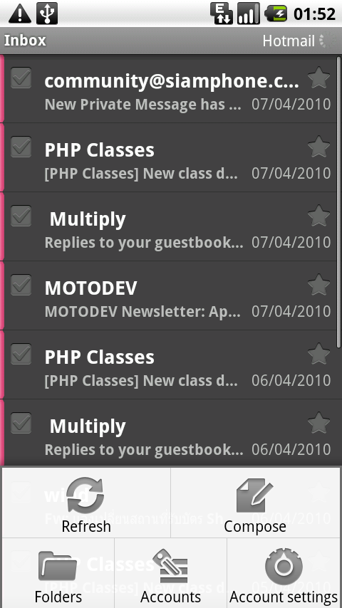 แสดงรายการอีเมลล์ในกล่องขาเข้า