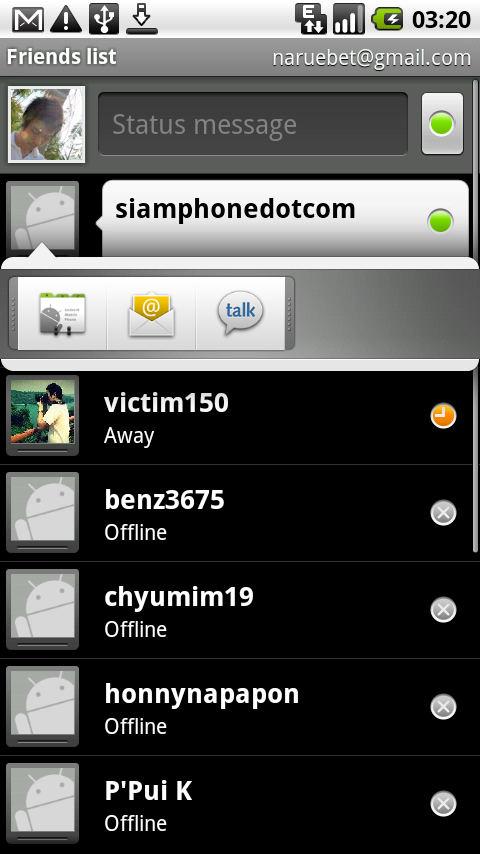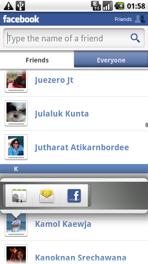 แตะที่รูปย่อของเพื่อนจะสามารถเลือกการติดต่อผ่านช่องทางอื่นได้