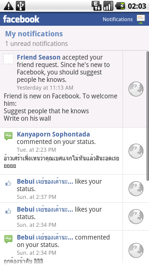แสดงความเคลื่อนไหวของเพื่อนๆ ที่เกี่ยวข้อกับผู้ใช้