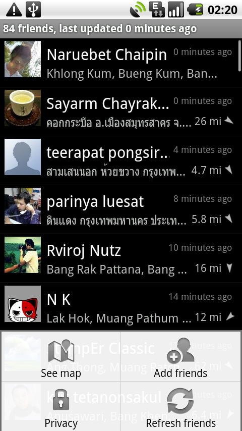 แสดงรายชื่อเพื่อนและทิศตำแหน่งจากผู้ใช้