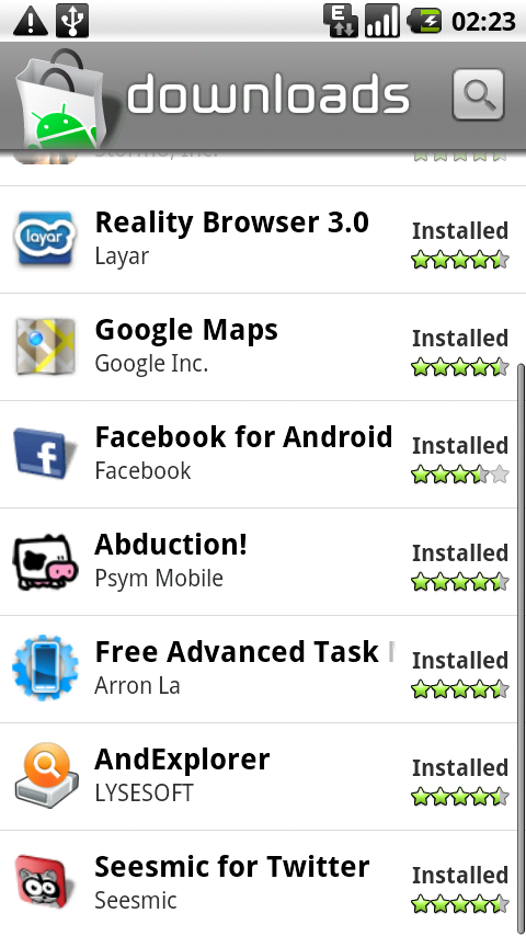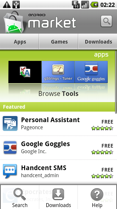 แอปพลิเคชั่น Market โปรแกรมสำหรับดาวน์โหลดแอปพลิเคชั่นเพิ่มเติมมาติดตั้ง มีแอปพลิเคชั่นให้เลือกโหลดมากมายแบ่งตามหมวดหมู่ต่างๆ