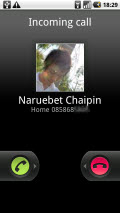 การรับสาย จะมีหน้าจอของโปรแกรม Phone ให้ผู้ใช้งานเลือกที่จะรับสายหรือวางสาย โดยการแตะที่ไอคอนแล้วเลื่อน