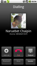 หน้าจอขณะโทร มีปุ่มสั่งการบนหน้าจอ 6 ปุ่ม
