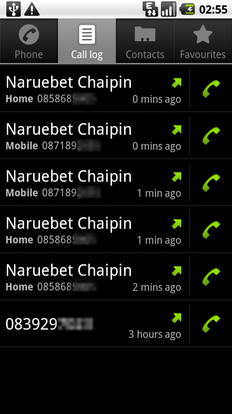 การโทรออก ผู้ใช้จะต้องมองหาไอคอนรูปหูโทรศัพท์ สำหรับกดเพื่อเข้าไปยังโปรแกรม Phone