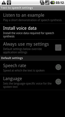 - Text-to-speech - กำหนดภาษาและเสียงพูดของตัวเครื่อง