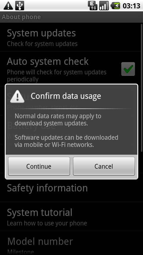 หน้าจอหลักของโมโตโรล่าไมล์สโตน