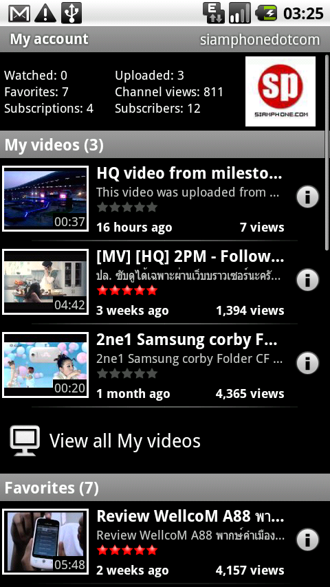 รายการวีดีโอที่ผู้ใช้ได้อัพโหลดและเลือกรายการโปรดไว้