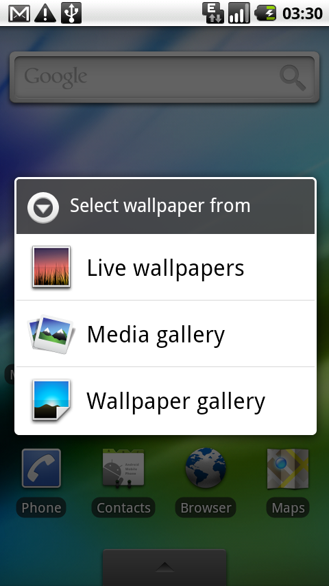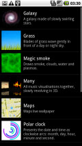 Live Wallpaper - พื้นหลังดิ้นได้ที่จะเปลี่ยนแปลงการแสดงผลไปตามรูปแบบทีี่กำหนดไว้ เช่น Galaxy จะแสดงหมู่ดาวที่โคจรกันเป็นวง หมุ่นวนอยู่บนหน้าจอ เป็นต้น