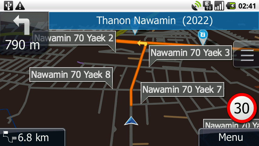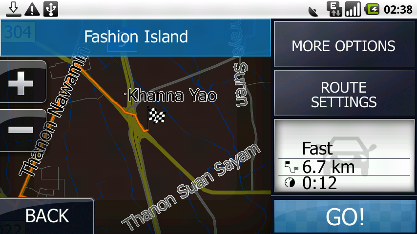 หลังจากกด Go โปรแกรมจะเริ่มนำทางผู้ใช้ไปยังจุดหมาย