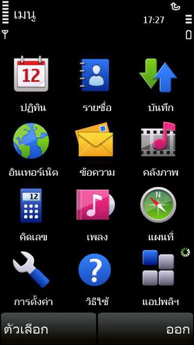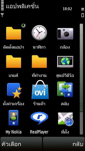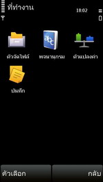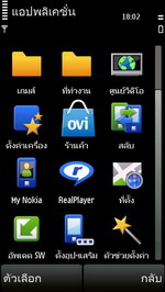 แอปพลิเคชั่น - รวมฟังก์ชั่นนาฬิกา, กล้อง, เกมส์, ที่ทำงาน (ตัวจัดการไฟล์, พจนานุกรม, ตัวแปลงค่า, บันทึก), ศูนย์วีดีโอ, อัพเดตซอฟต์แวร์, ตัวช่วยการตั้งค่า, ร้านค้า Ovi, สลับ, My Nokia, โปรแกรม RealPlayer, ที่ตั้ง, อัพเดต SW, ตั้งอุปกรณ์เสริม และ ตัวช่วยตั้งค่า