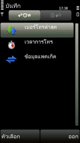 บันทึก - แสดงข้อมูลเบอร์ที่ไม่ได้รับ, เบอร์ที่รับสาย, เบอร์ที่โทรออก, เวลาการโทร, ข้อมูลแพคเก็ต, และ การรับ-ส่งข้อความ สามารถเช็คสถานะภาพการใช้งาน (โทรเข้า, รับสาย รับ-ส่ง SMS/MMS) กำหนดระยะเวลาในการจัดเก็บข้อมูลได้สูงสุด 30 วัน